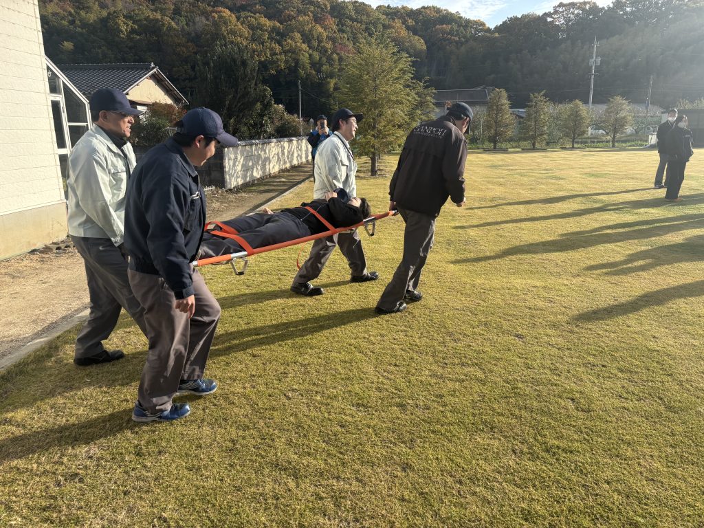 今年は、けが人が出たことを想定して、担架にて避難する練習もしました。